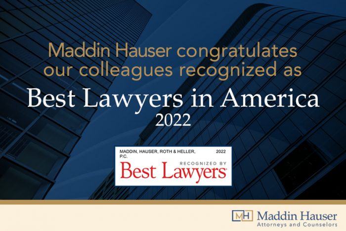 Maddin Hauser is thrilled to announce that twenty attorneys have been selected for inclusion in the 2022 Edition of The Best Lawyers in America for their work across several practice areas.