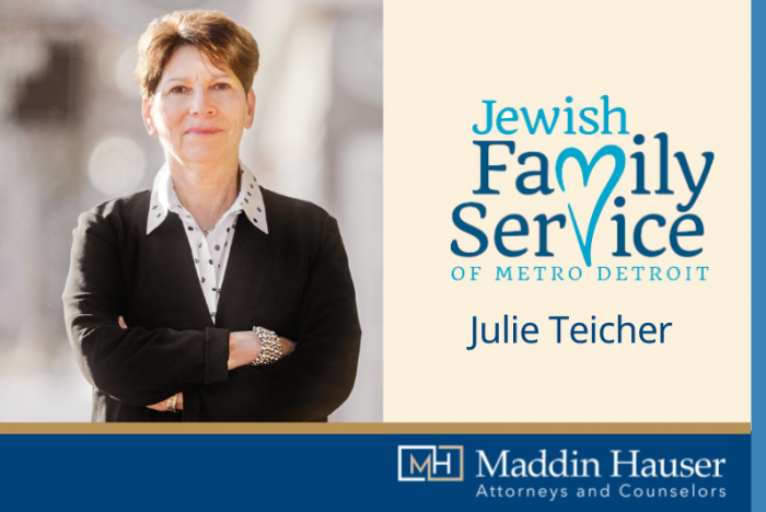 After more than ten years in leadership roles with Jewish Family Services of Metropolitan Detroit (JFS), Maddin Hauser shareholder Julie Teicher recently concluded her term as chair of the board of directors. She proudly led the active 36-member board, which provides oversight to the organization. Julie was elected to the position in 2019 and will continue serving as immediate past chair.