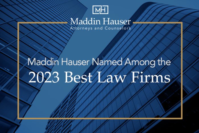 Maddin Hauser is pleased to announce U.S. News – Best Lawyers ® “Best Law Firms” has recognized the firm for its work across several practice areas in its 2023 edition. Ranked regionally in 14 practice areas, the firm is proud to achieve Tier 1 recognition, the highest tier possible, for 12 of them.