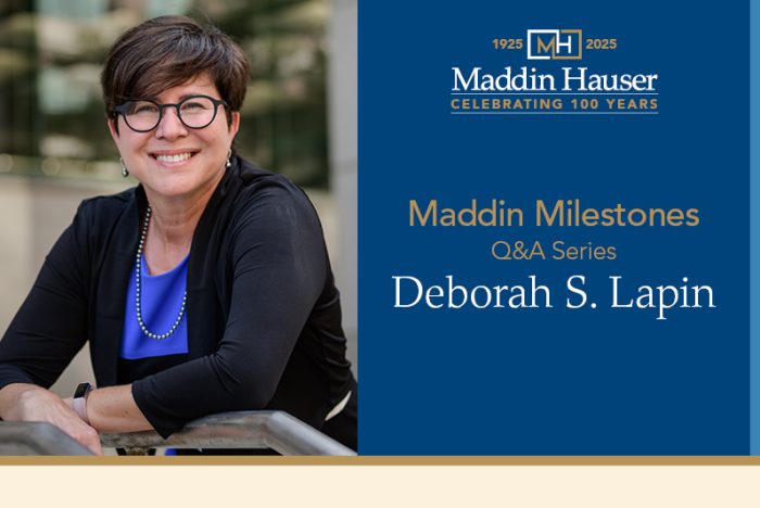 Today, we chatted with Deb Lapin, a shareholder and member of Maddin Hauser’s Consumer Finance/Regulatory Compliance and Real Property Litigation Practice Groups.